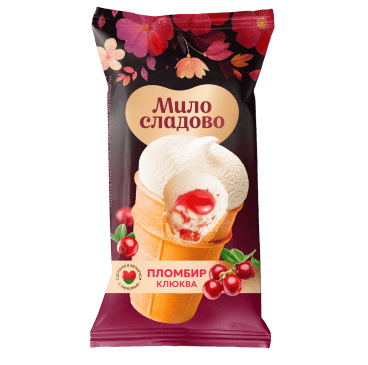 - Мороженое пломбир на сливках с припасом клюквенным 15% МС в вафельном стаканчике 90г